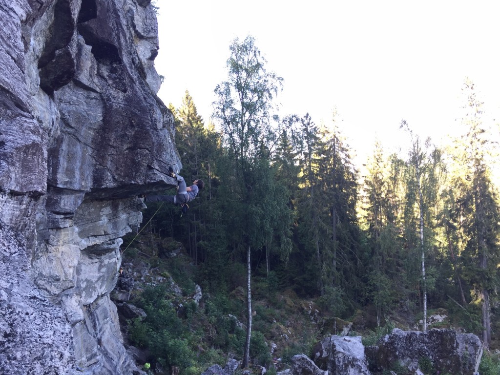 24.07.2019 - On Wednesday we continue to Hammer’n. After a short drive of about 30 minutes we enjoy the beautiful view over a river. The climbing area is small but nice and offers varied climbs on rough rock. We meet a Finnish and a Spanish couple with whom we chat about their recent experiences in Norway.
