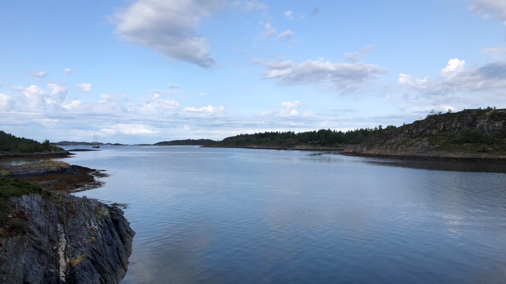 We are woken at about 08:00 in the morning by construction work. When the digger operator sees us, he takes a break and starts chatting with us. Of course we do not want to have breakfast surrounded by construction noise and search for a quiet place at a fjord a few kilometers down the road. The breakfast turns into a leisurely brunch.