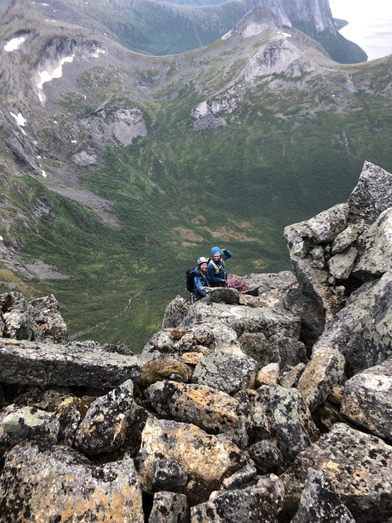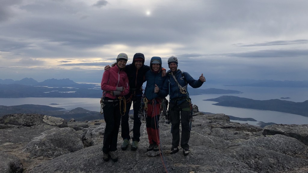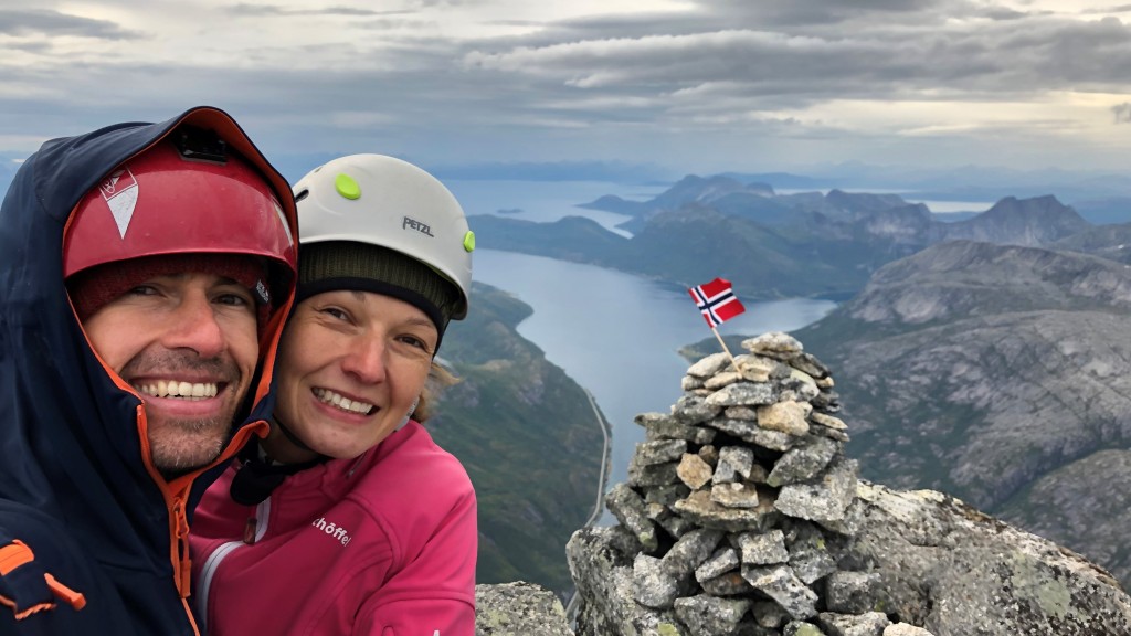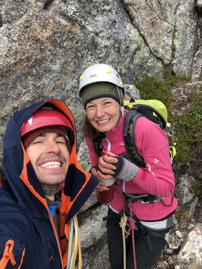 18.08.2019 - Karen and Marius welcome us with a smile on their faces. We are all still tired, but the joy of the Vestveggen/Vesteggen outweighs. They had already given up hope of doing the route this season. The spontaneous decision to partner up for the climb was advantageous for all of us. Otherwise, we would have needed much longer and the rain break could have been too short. Furthermore, it is good to know that a second rope team can help in case of an emergency.