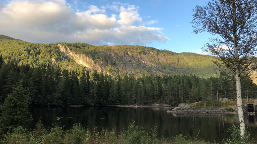 02.09.2019-03.09.2019 - At some time we reach the famous Setesdal. The many campsites in this valley are proof of its popularity. Near Bygland we find a small resting place which is separated from the road by a small forest and has a picnic area with toilets nearby. The view is terrific. There is also an old stone bridge with a disused floodgate built in 1915 which can only be passed by pedestrians.
