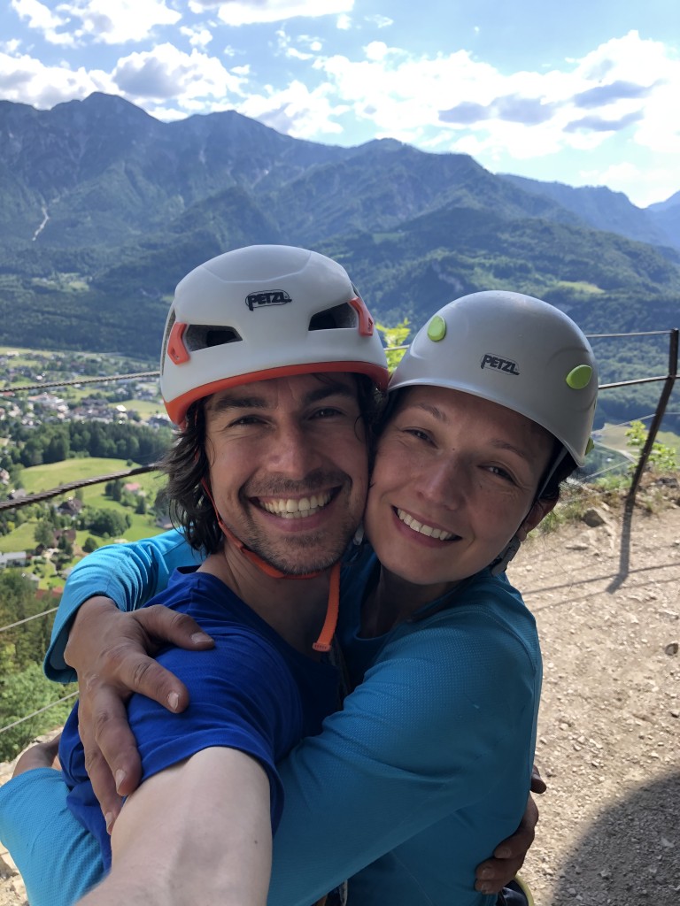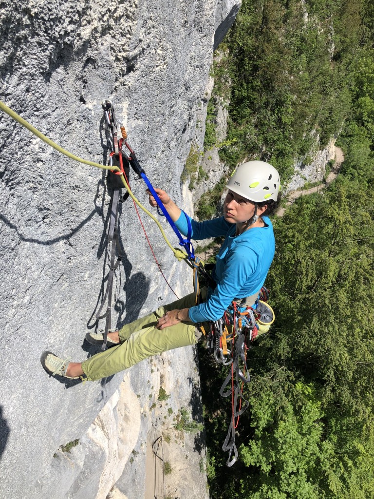 13.06.2020 - For my birthday Sigi not only presented me with the tour to the summit of the Großglockner, but also with new ‘accessories’. Among other things I got a special daisy chain, but at that time I did not know its true value. Two aiders and two ascenders have been in my possession for quite some time now. Now it is about time to give them a try. Sigi chose the route Techno-Lehrling (engl. Aid Climbing Apprentice) on the Ewigen Wand near Bad Goisern. For the first attempts we set up an intermediate belay on the bottom third of the wall. Thus, Sigi can always keep an eye on me and give me advice.
