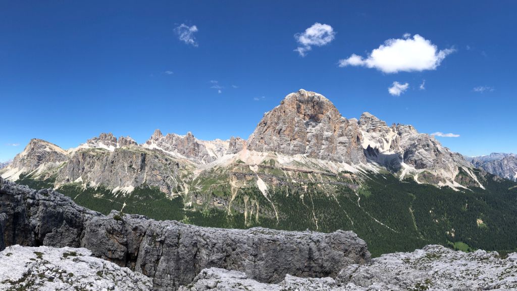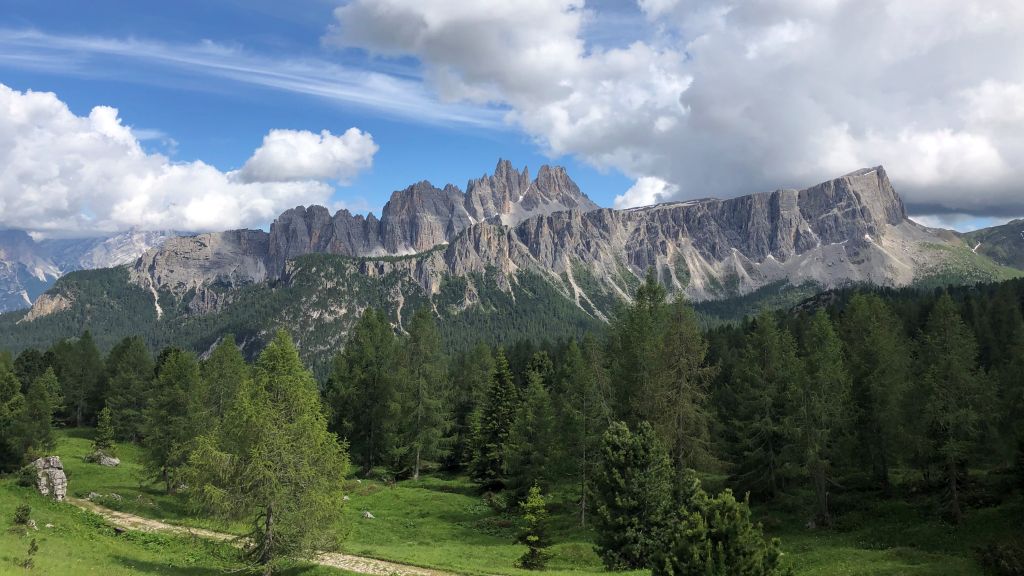 In the afternoon we arrive at our planned destination. We find ourselves in a parking area overlooking the Tofana di Rozes in the Dolomiti d’Ampezzo Natural Park.